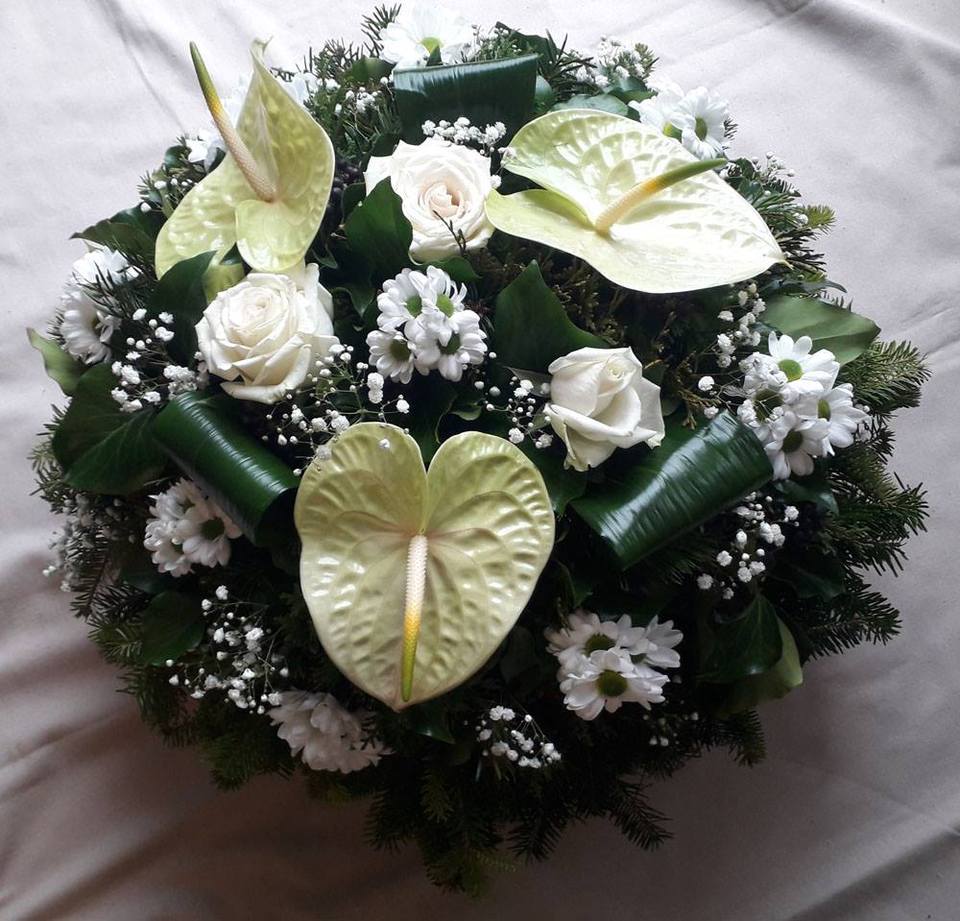 60 cm átmérőjű, fekvő koszorú, Anthuriummal 25 310 Ft Mennyiség: Kosárba Fiatal, férfinek készítettük ezt a koszorút. 3 szál Anthurium, 3 szál rózsa, 3 szál krizantém, rezgő, 3 szál aszpidisztra levélCikkszám: 3864