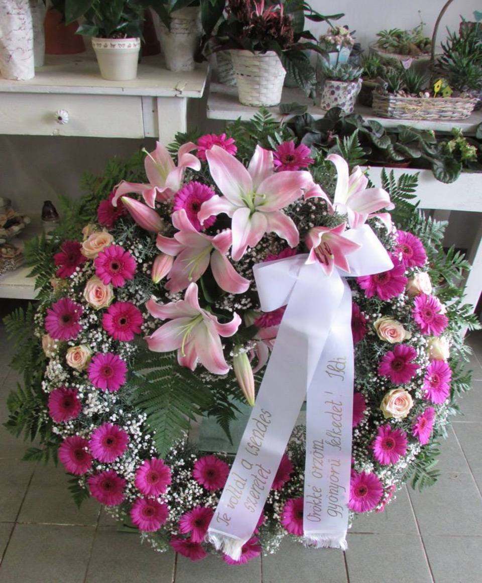 90 cm átmérőjű, tűzött, görög koszorú 45 900 Ft Mennyiség: Kosárba Rózsával, mini gerberával, liliommal díszített élővirágos, görög koszorú.Cikkszám: 3903