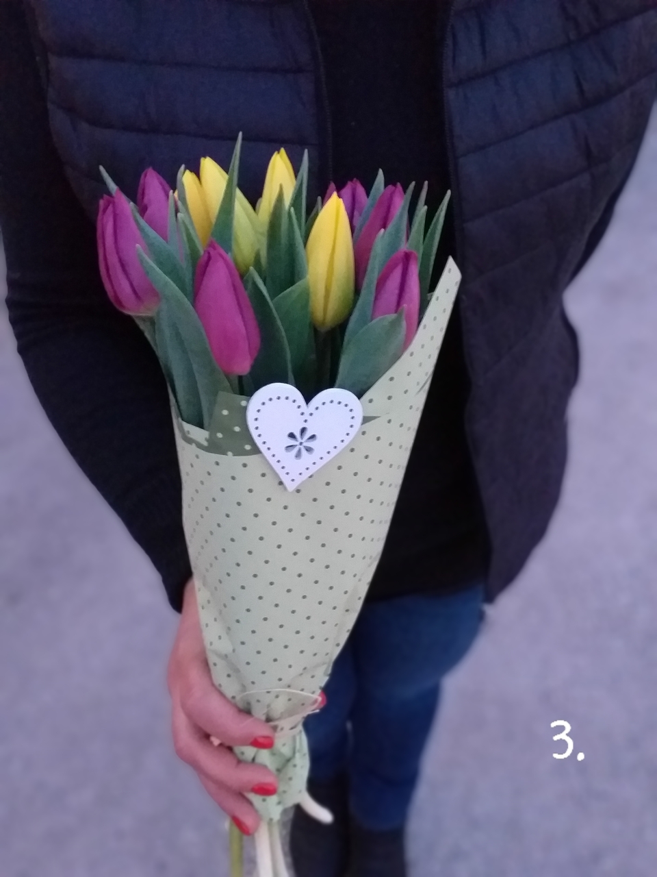Tíz szál, vegyes színű tulipán, díszpapírba csomagolva, fa szívecskével 10 350 Ft Tíz szál, vegyes színű tulipán, díszpapírba csomagolva, fa szívecskévelCikkszám: 3941