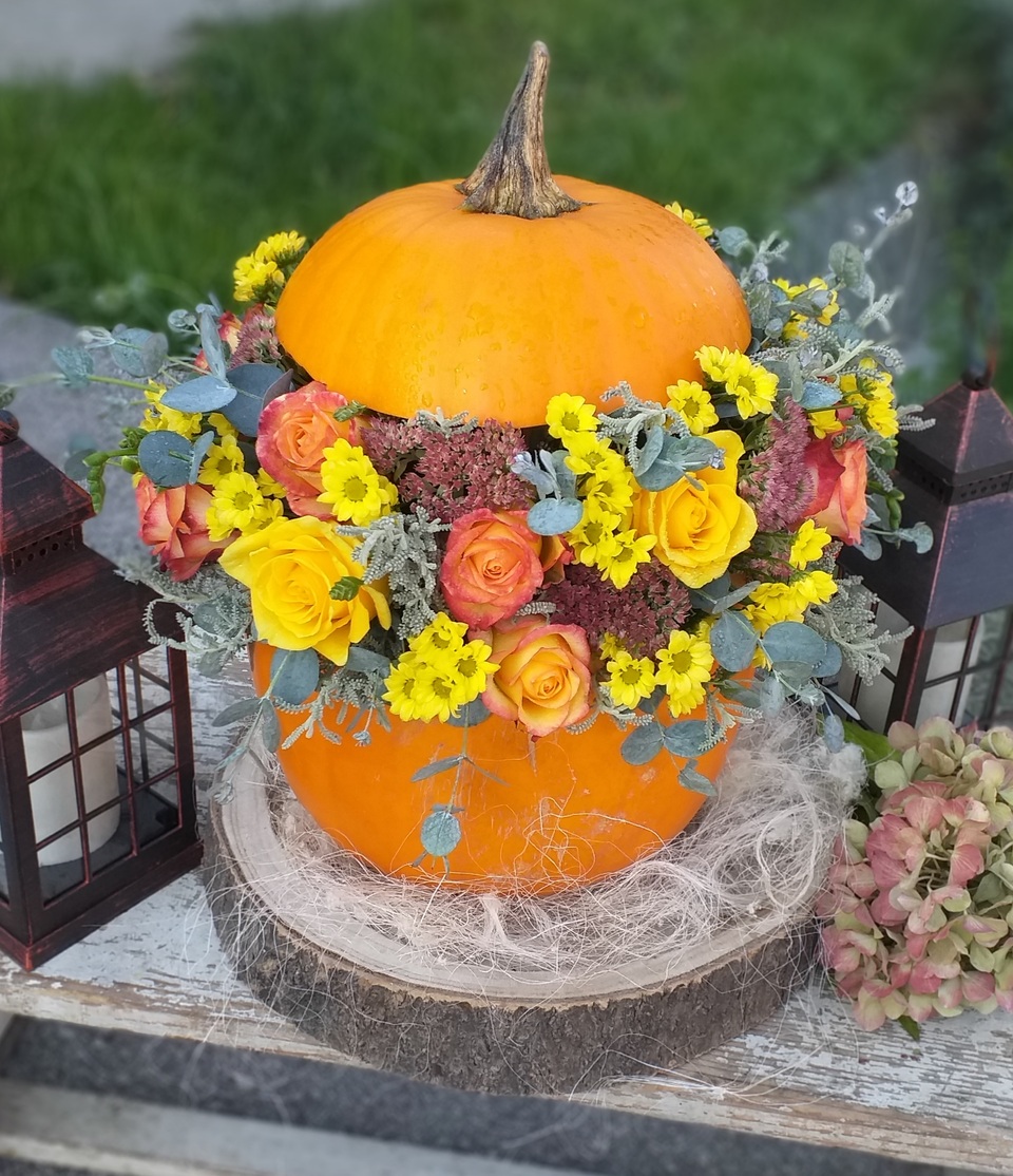 Őszi TÖK asztaldísz, élővirággal Jelenleg nem választható A termék jelenleg nincs raktáron! Őszi dekoráció, élővirággal díszített, Halloween Tök. Mérete, kb: 40 cm magas és 25 cm széles.Cikkszám: 3997